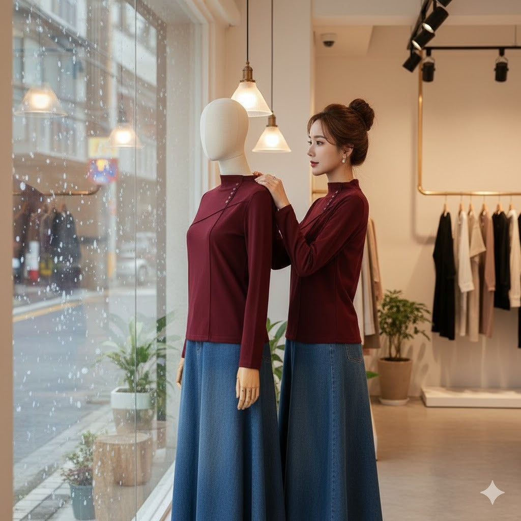 Vai 39cm, Ngực 90cm, Dài áo 53cm, Dài tay 59cm