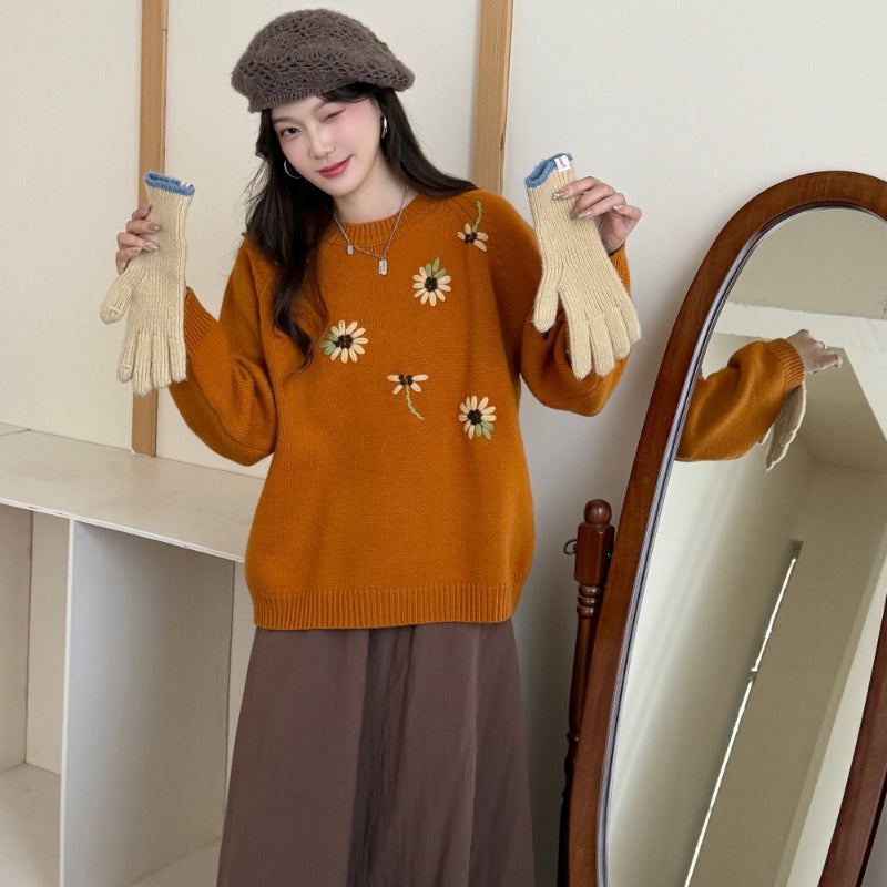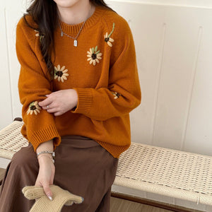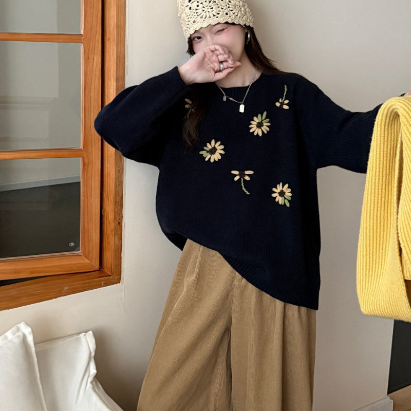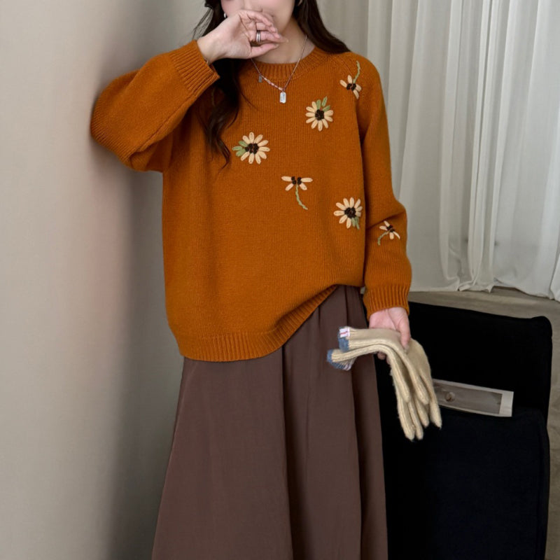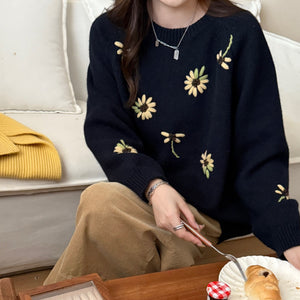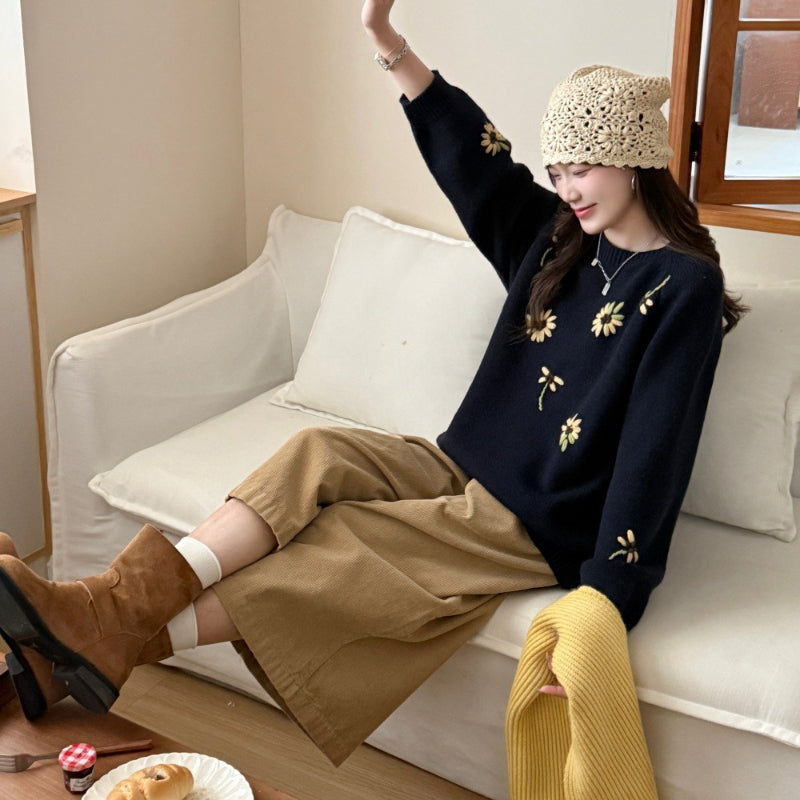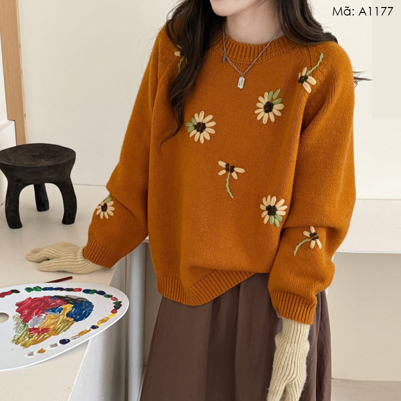 Áo len thêu hoa cổ tròn - A1176