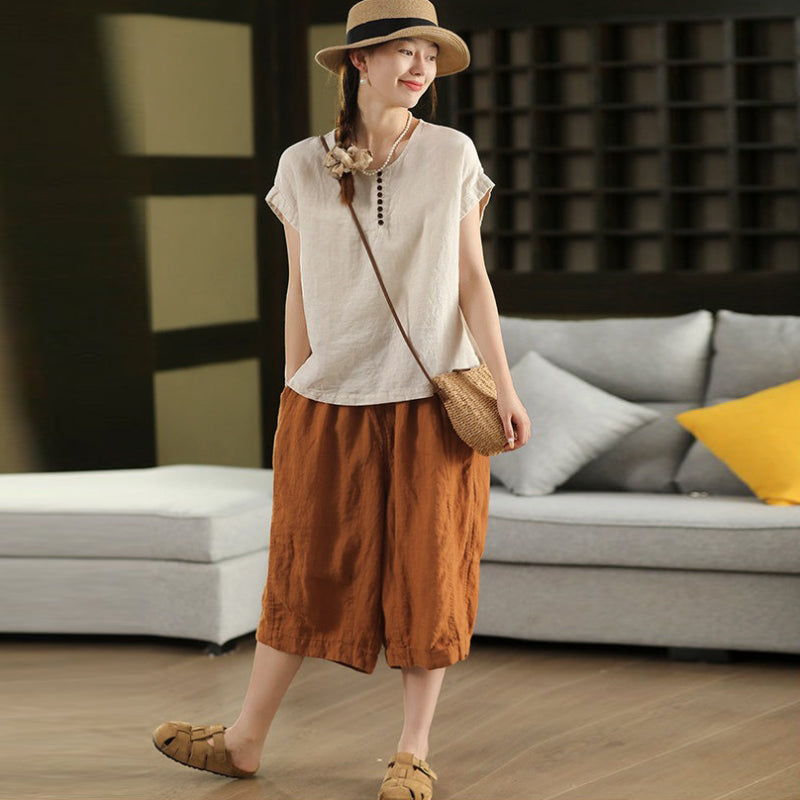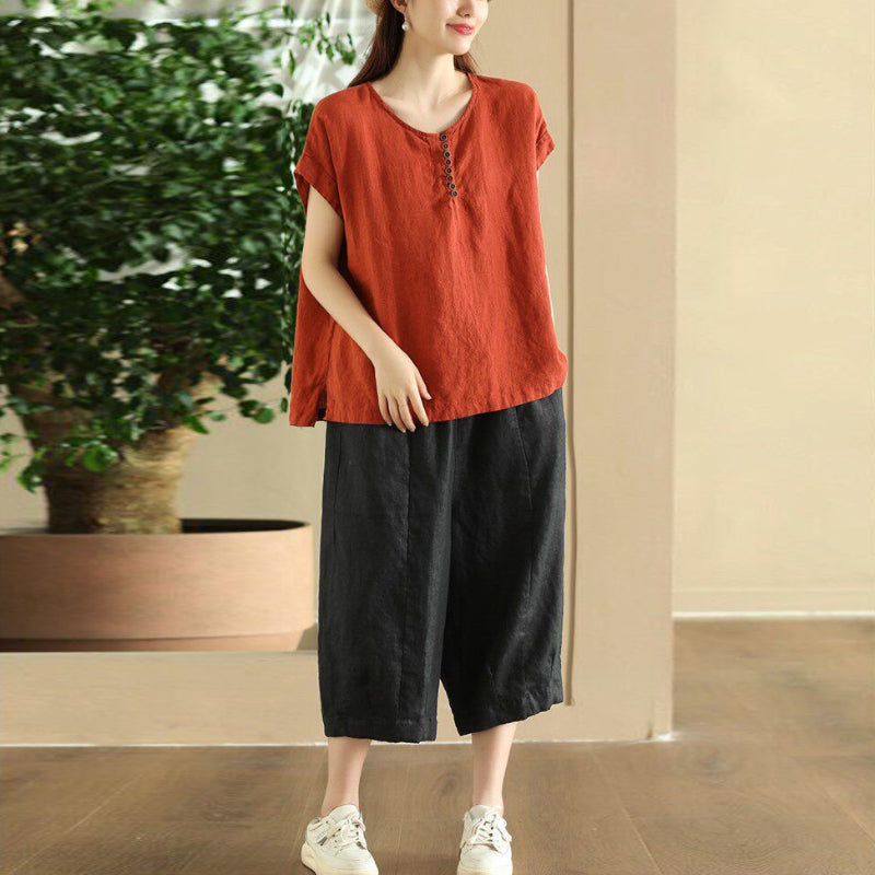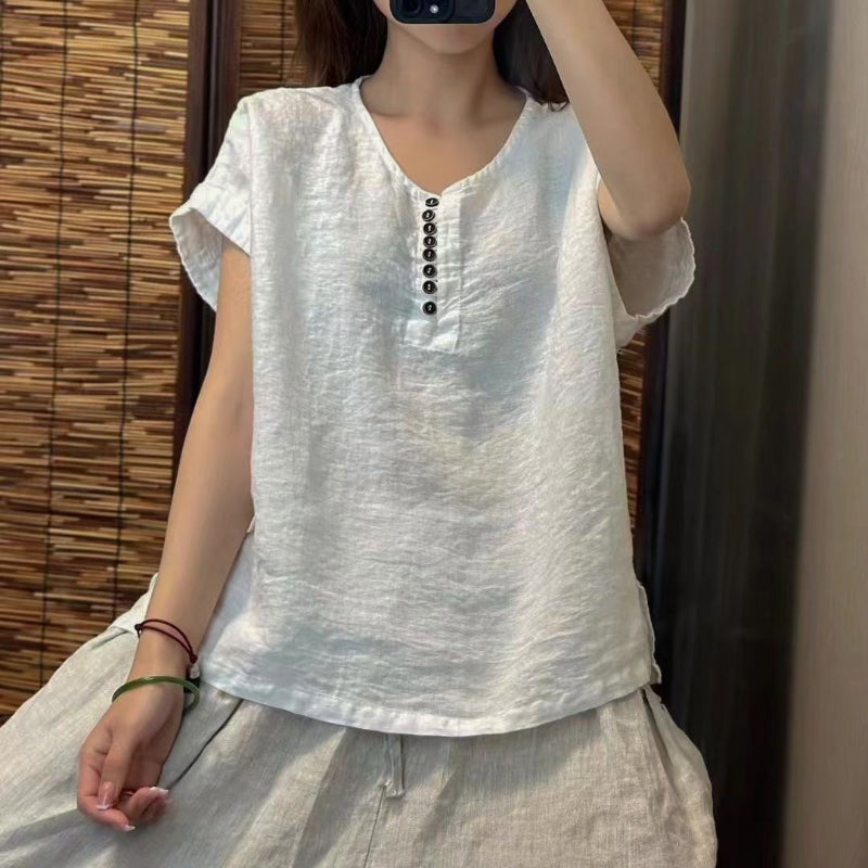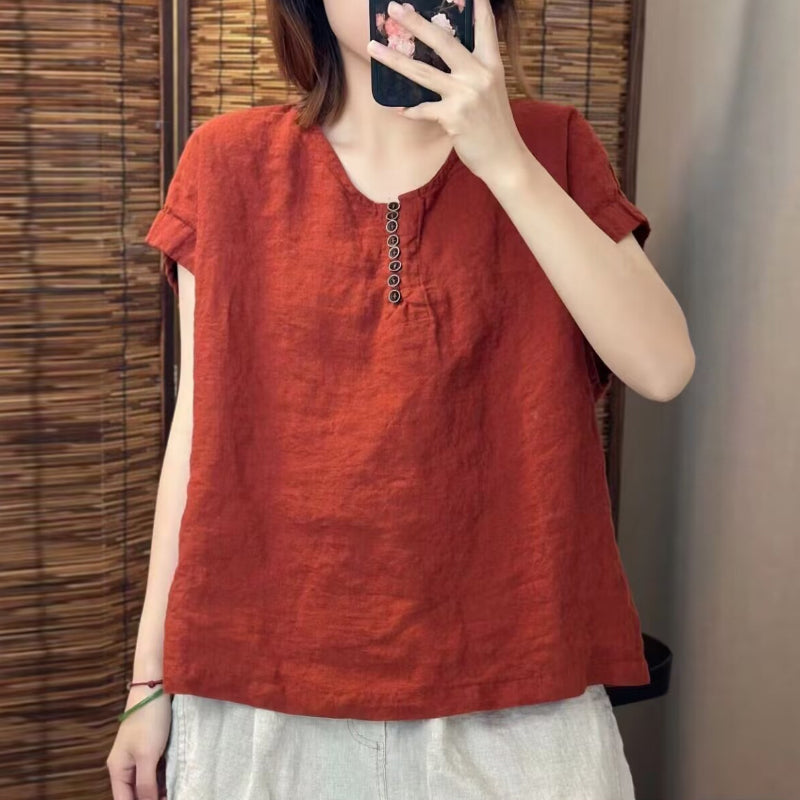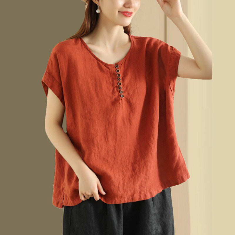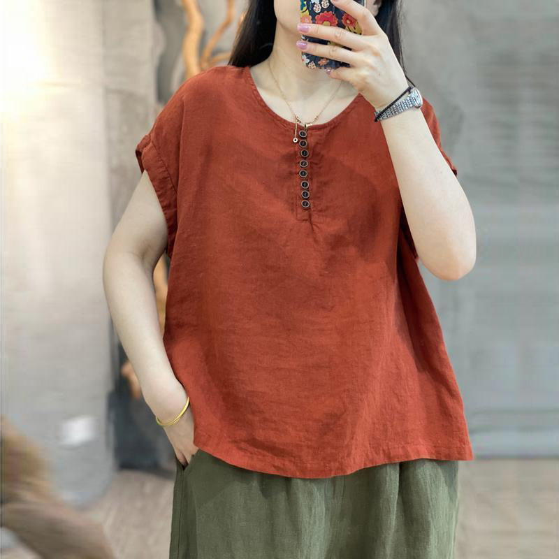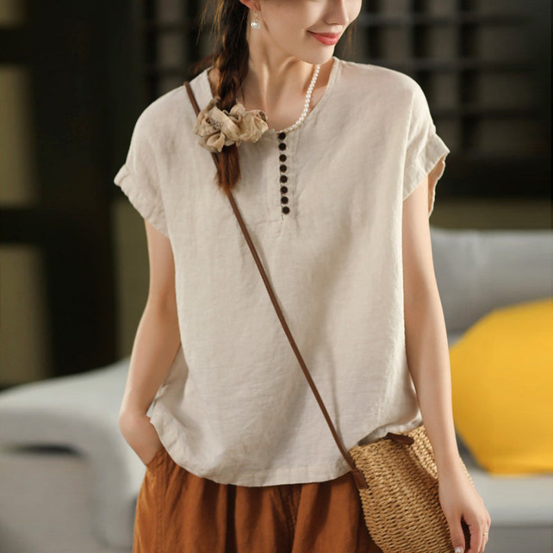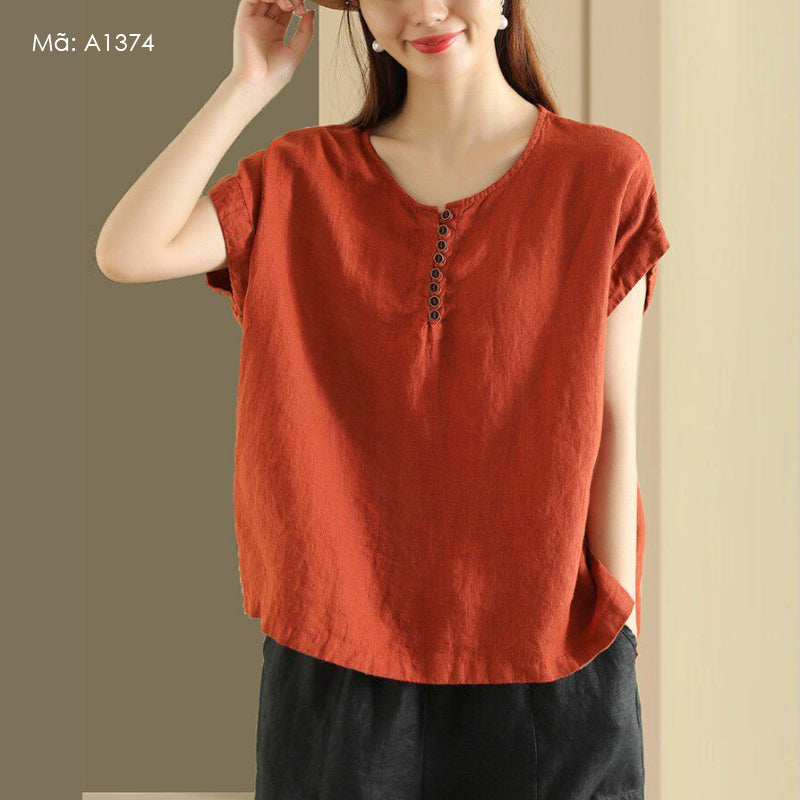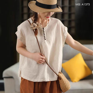 Áo sơ mi linen sát nách cổ tròn - A1373