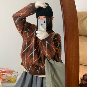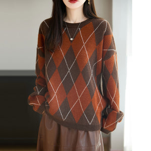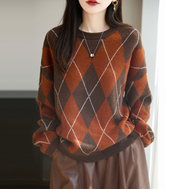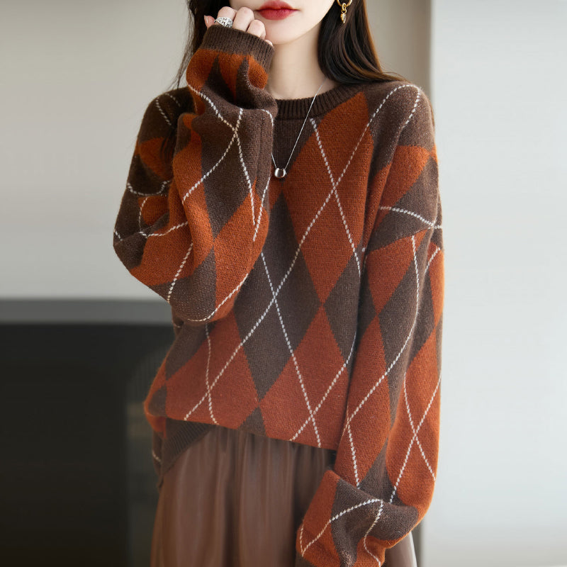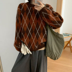 Áo len dệt kim kẻ quả trám - A1182