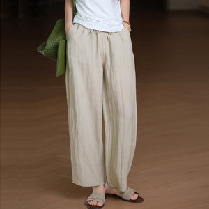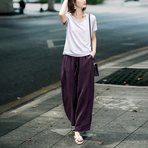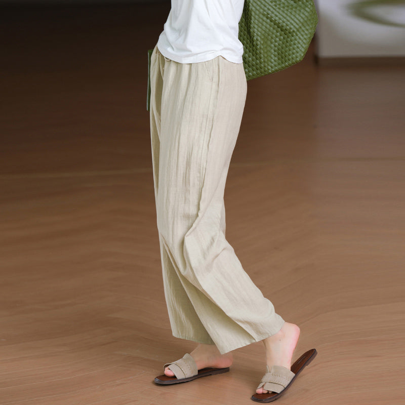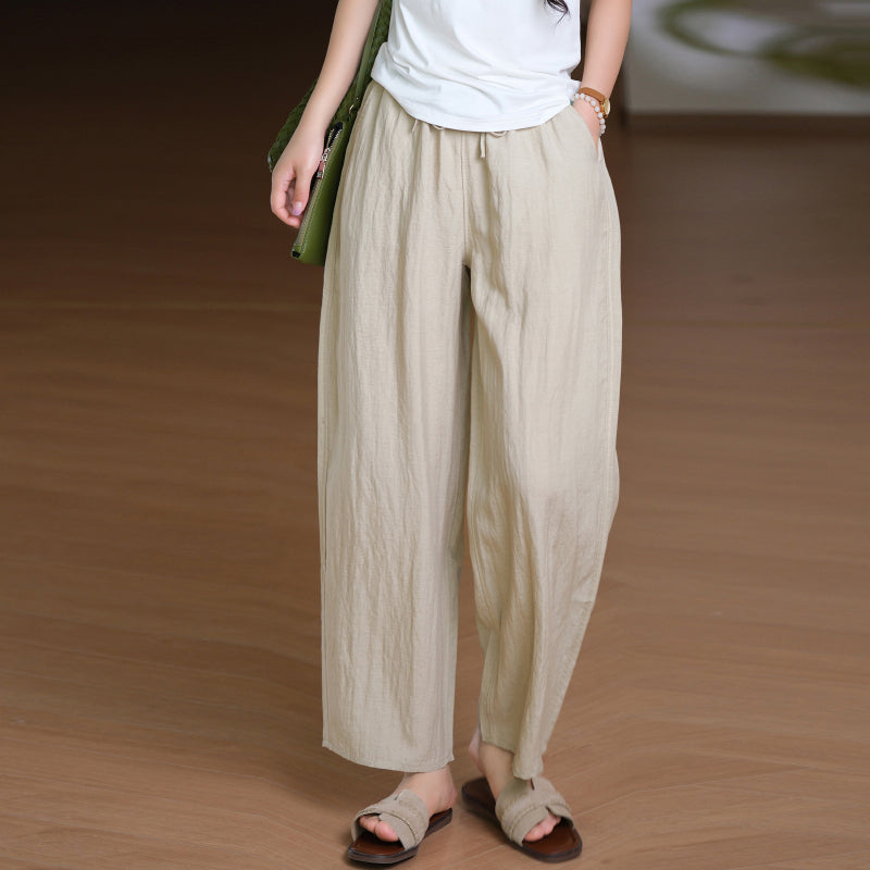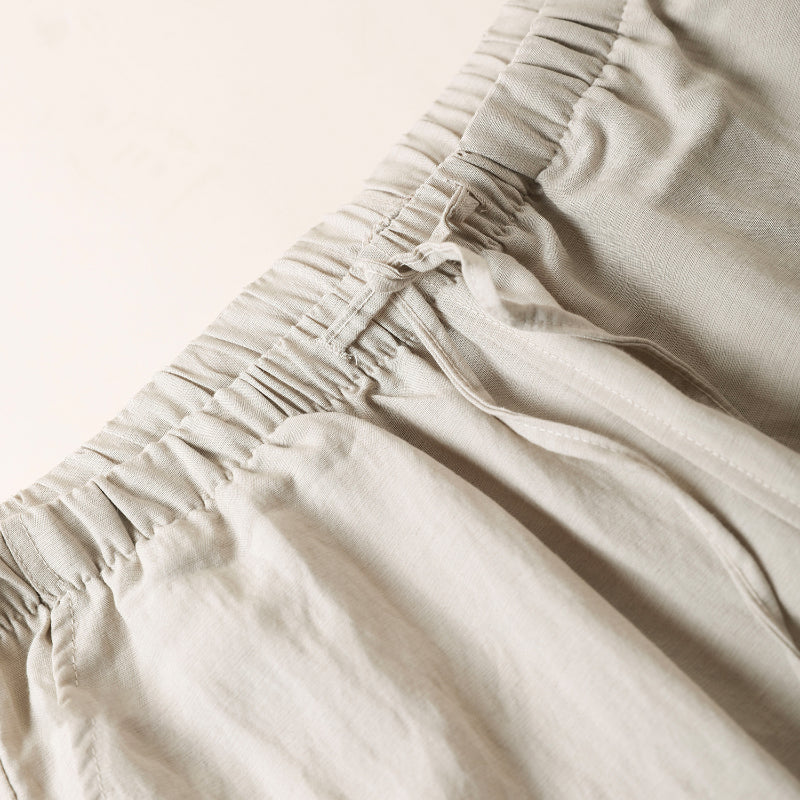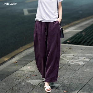 Quần baggy linen lưng thun dây rút ống đứng túi chéo - Q268