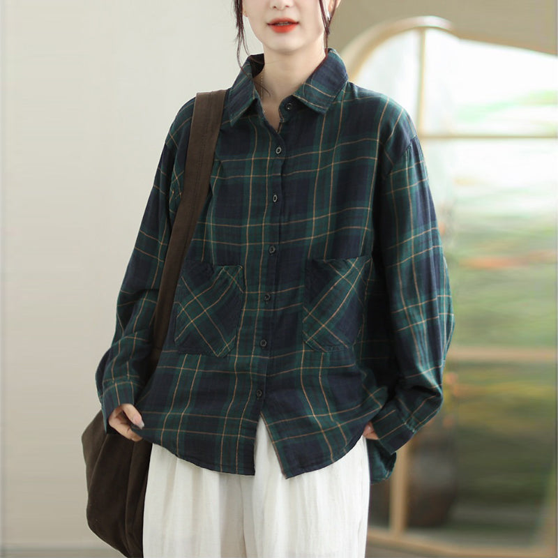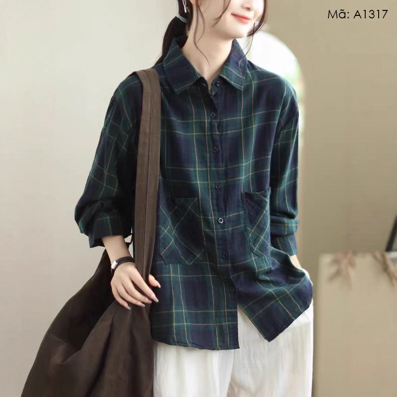 Áo sơ mi dài tay caro túi vuông - A1317