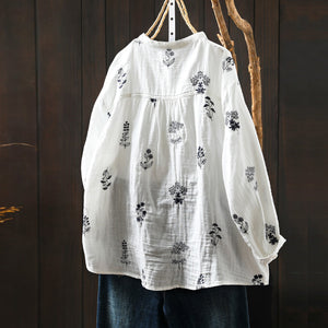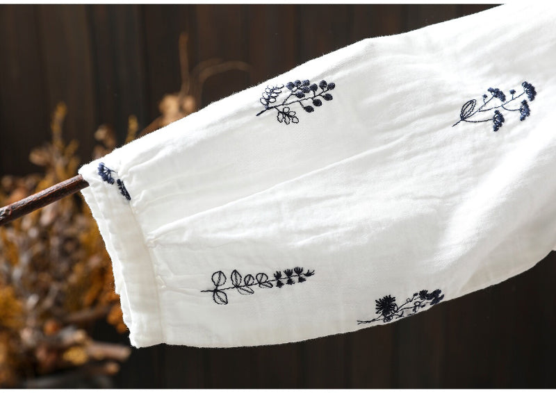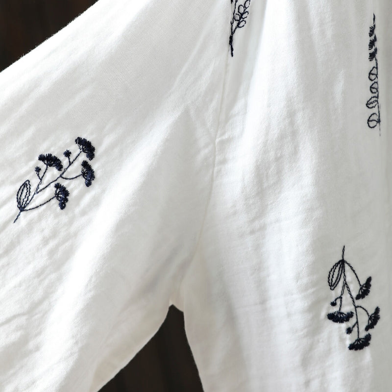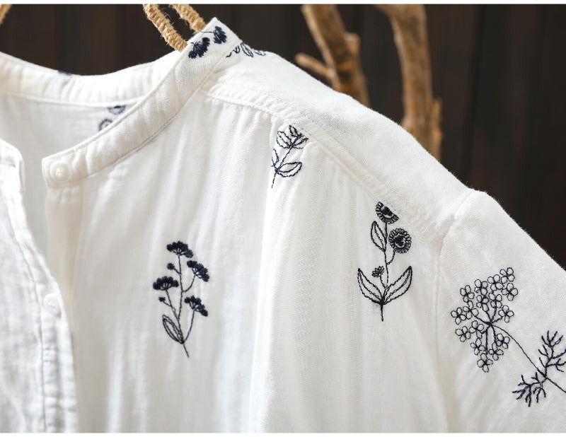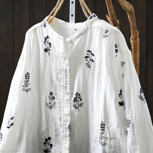Áo sơ mi linen dài tay thêu hoa - A1365