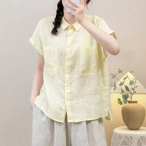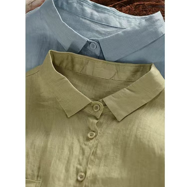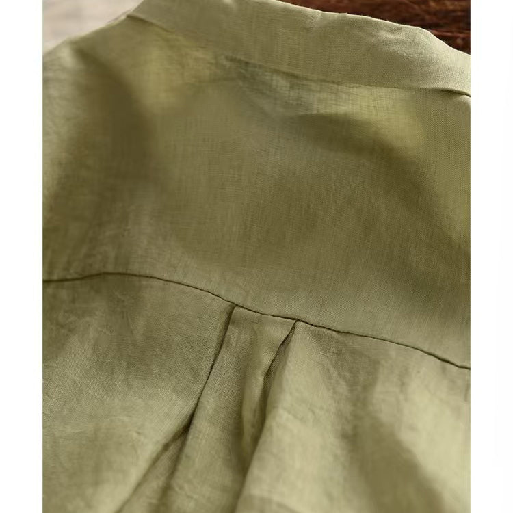 Áo sơ mi linen sát nách cổ đức hai túi vuông - A935