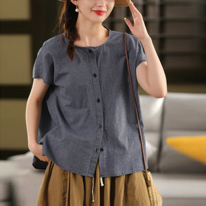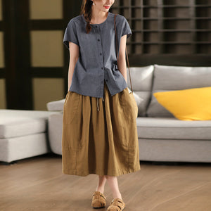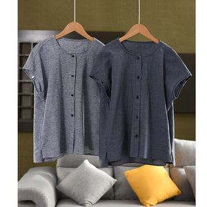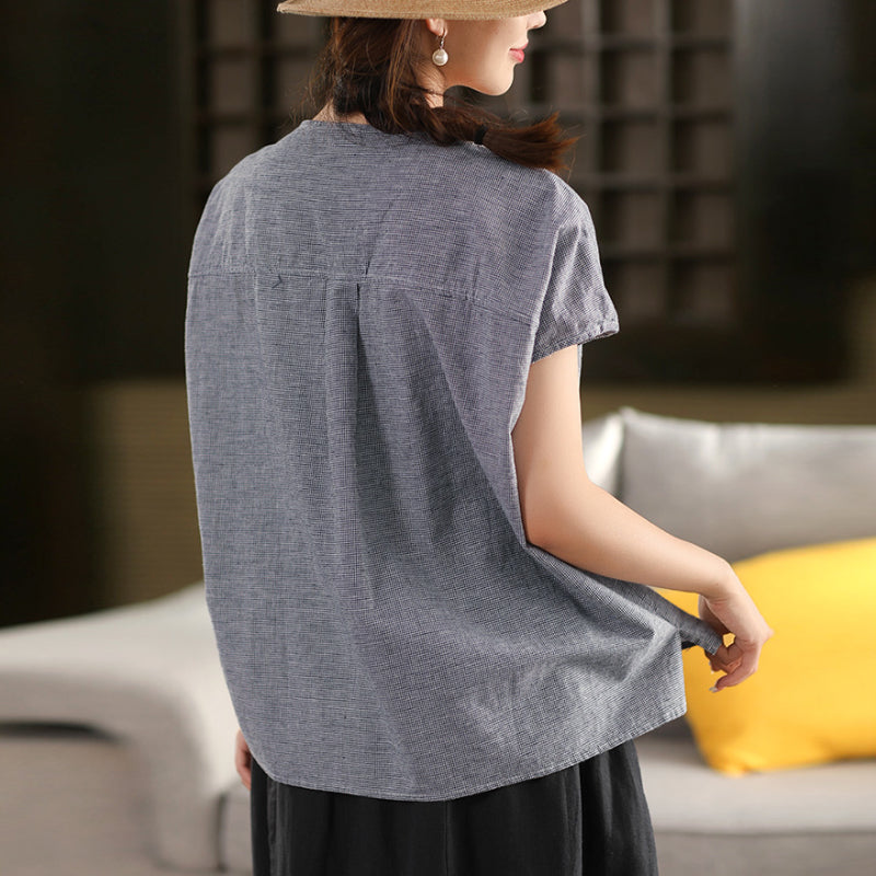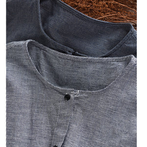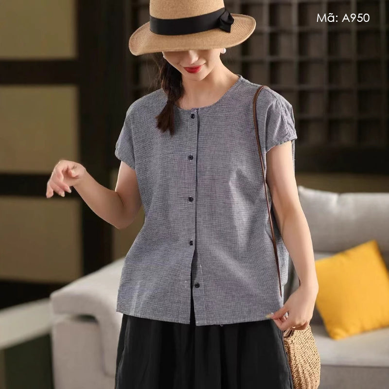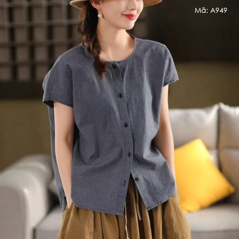 Áo sơ mi linen sát nách cổ tròn kiểu caro - A949