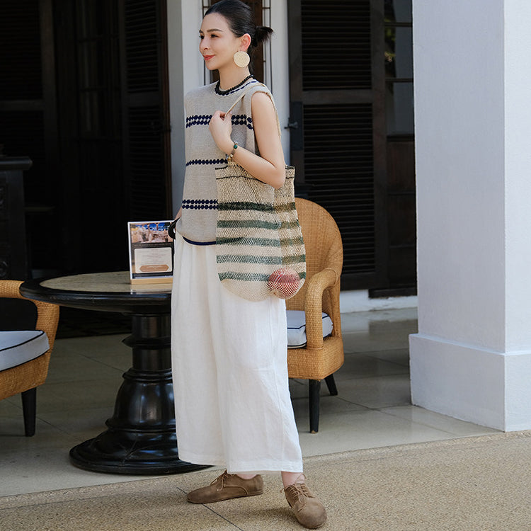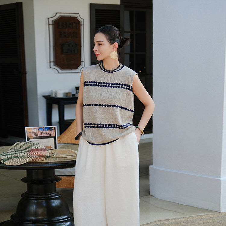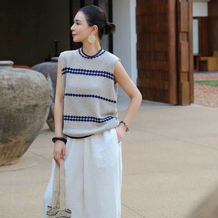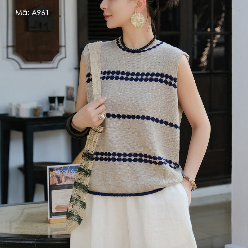 Áo T-shirt len đan sát nách cổ tròn - A961