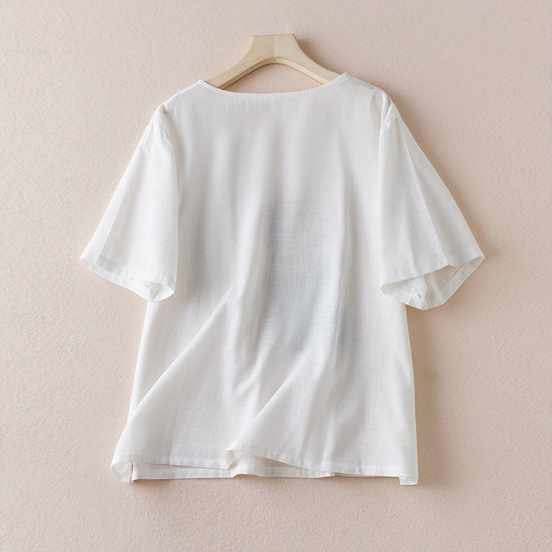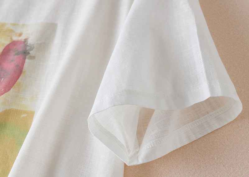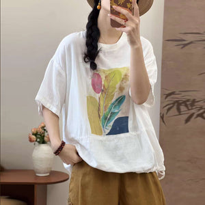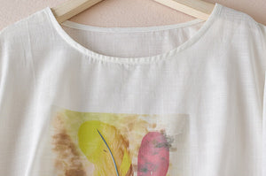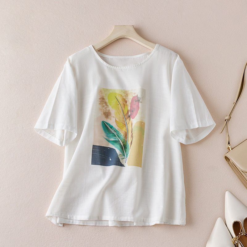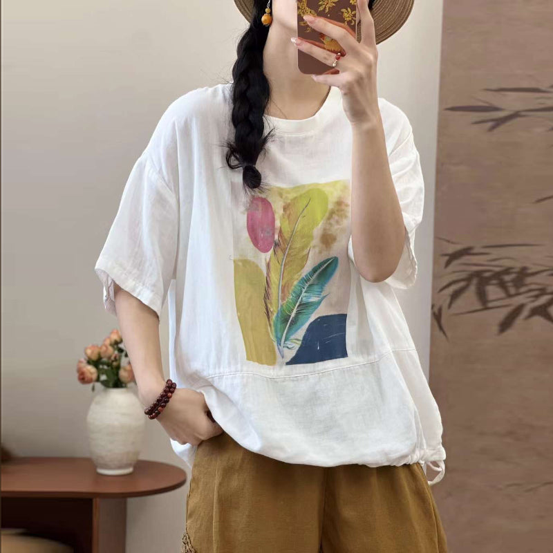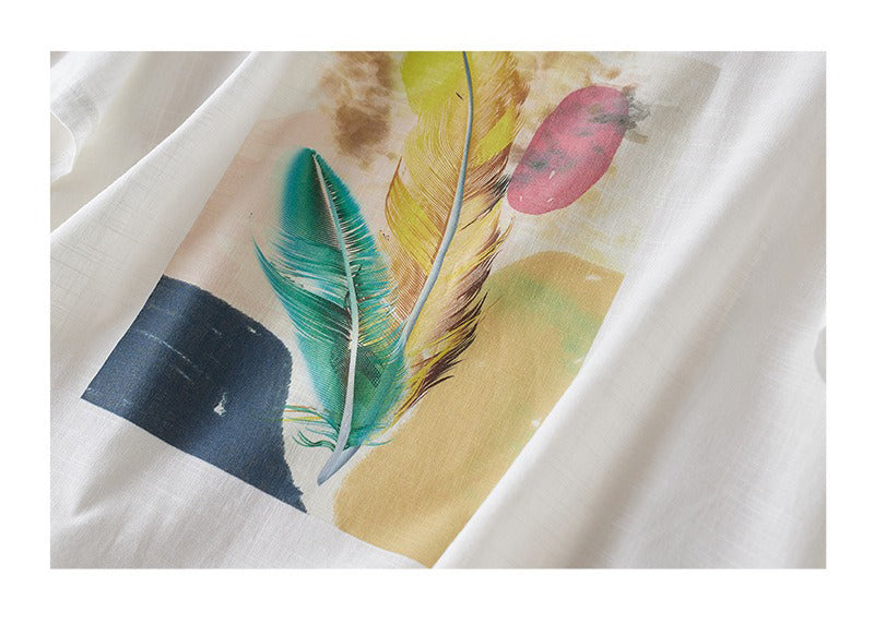 Áo T-shirt linen ngắn tay in lông vũ - A1364