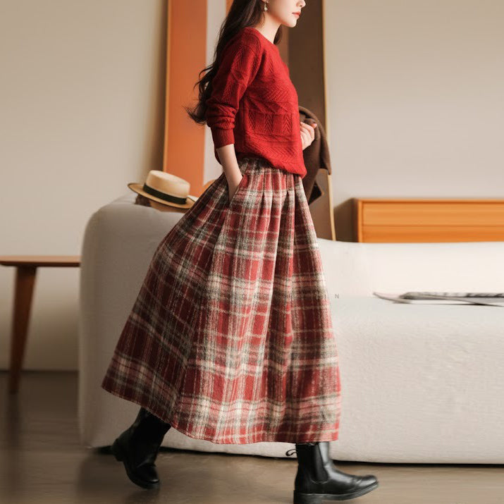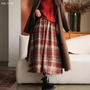 Chân váy len kẻ caro - V158