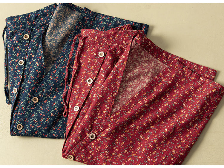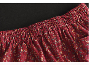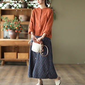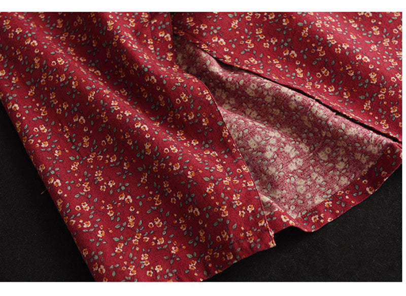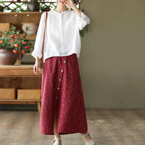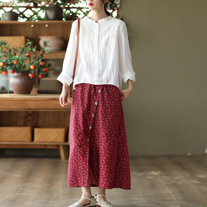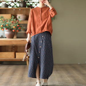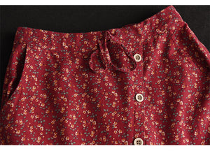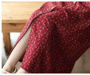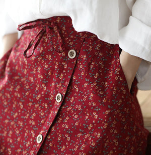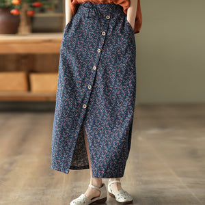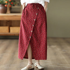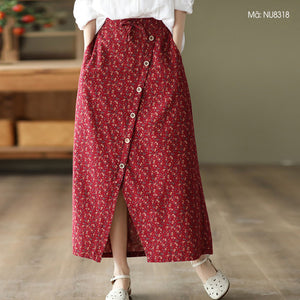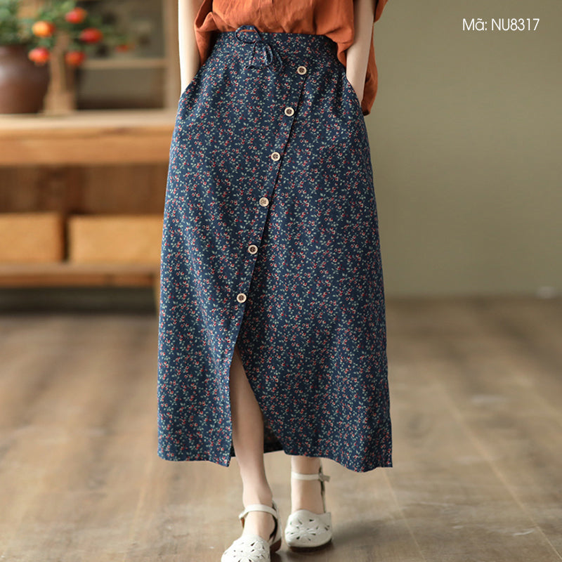 Chân váy linen lưng thun thắt dây xẻ tà chéo in hoa liti - NU8317