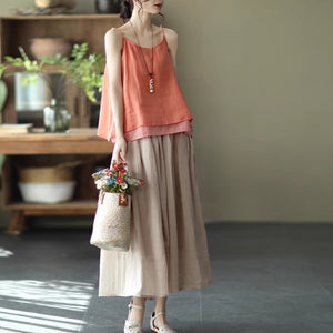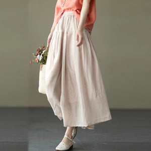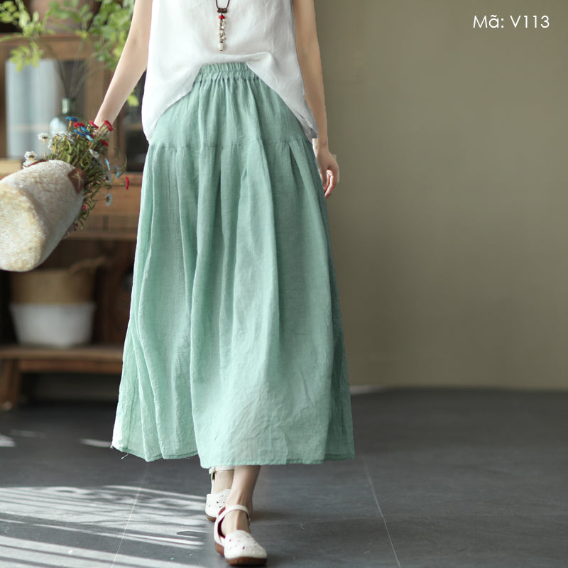 Chân váy linen retro lưng thun hai lớp - V096