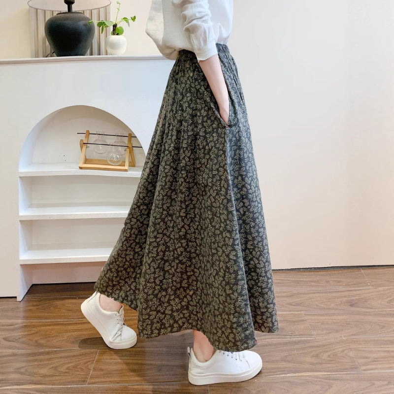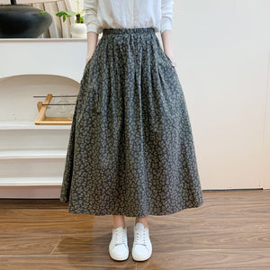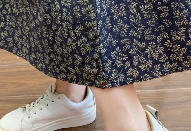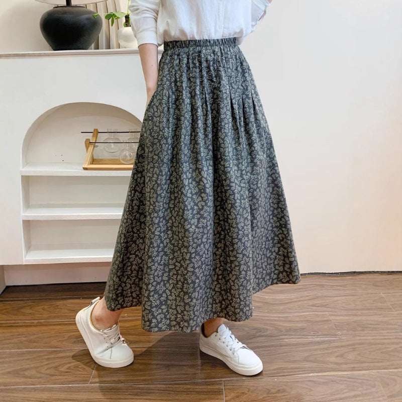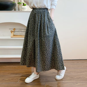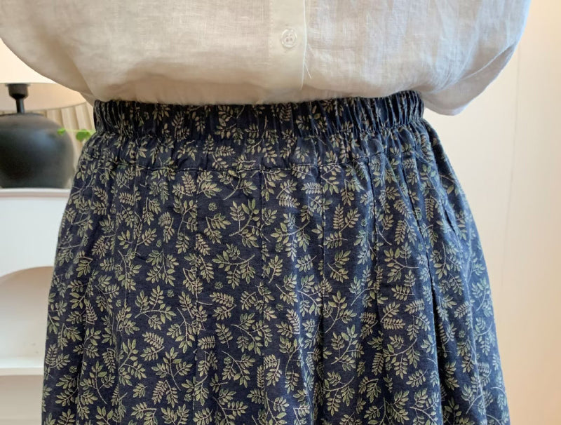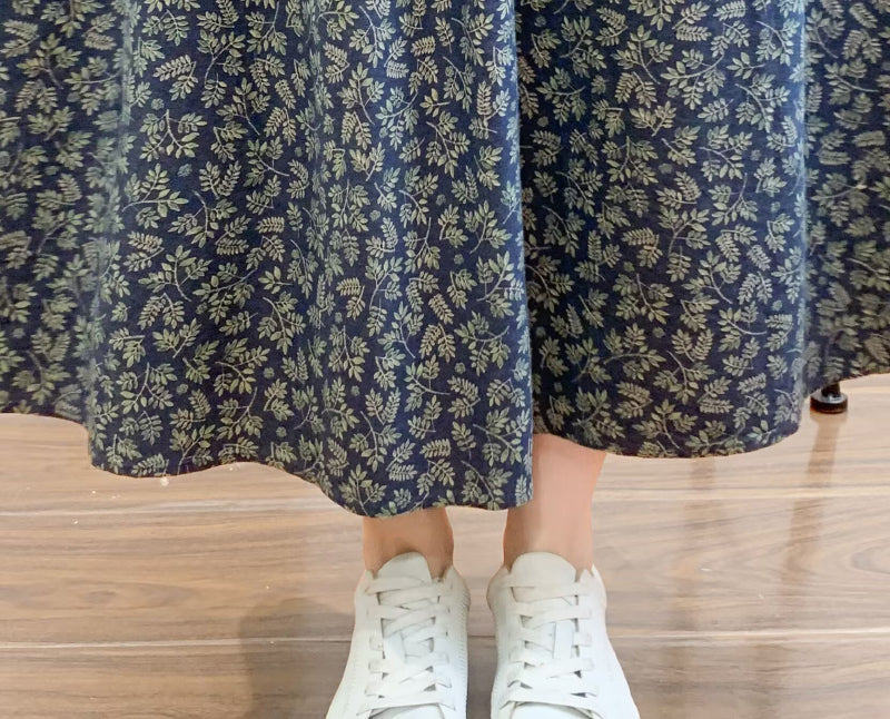 Chân váy xòe lưng thun in những chiếc lá liti - V132