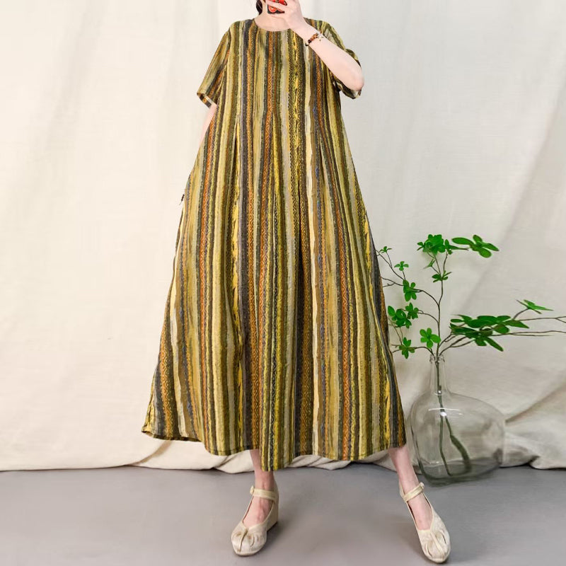 Đầm liền linen ngắn tay kẻ sọc sắc màu - D144