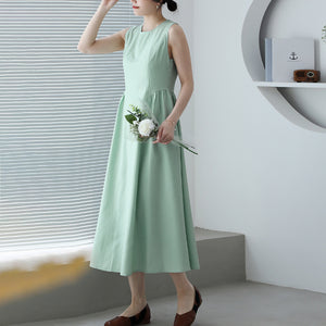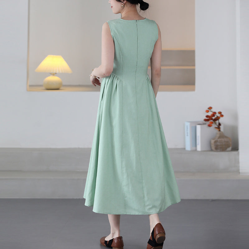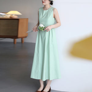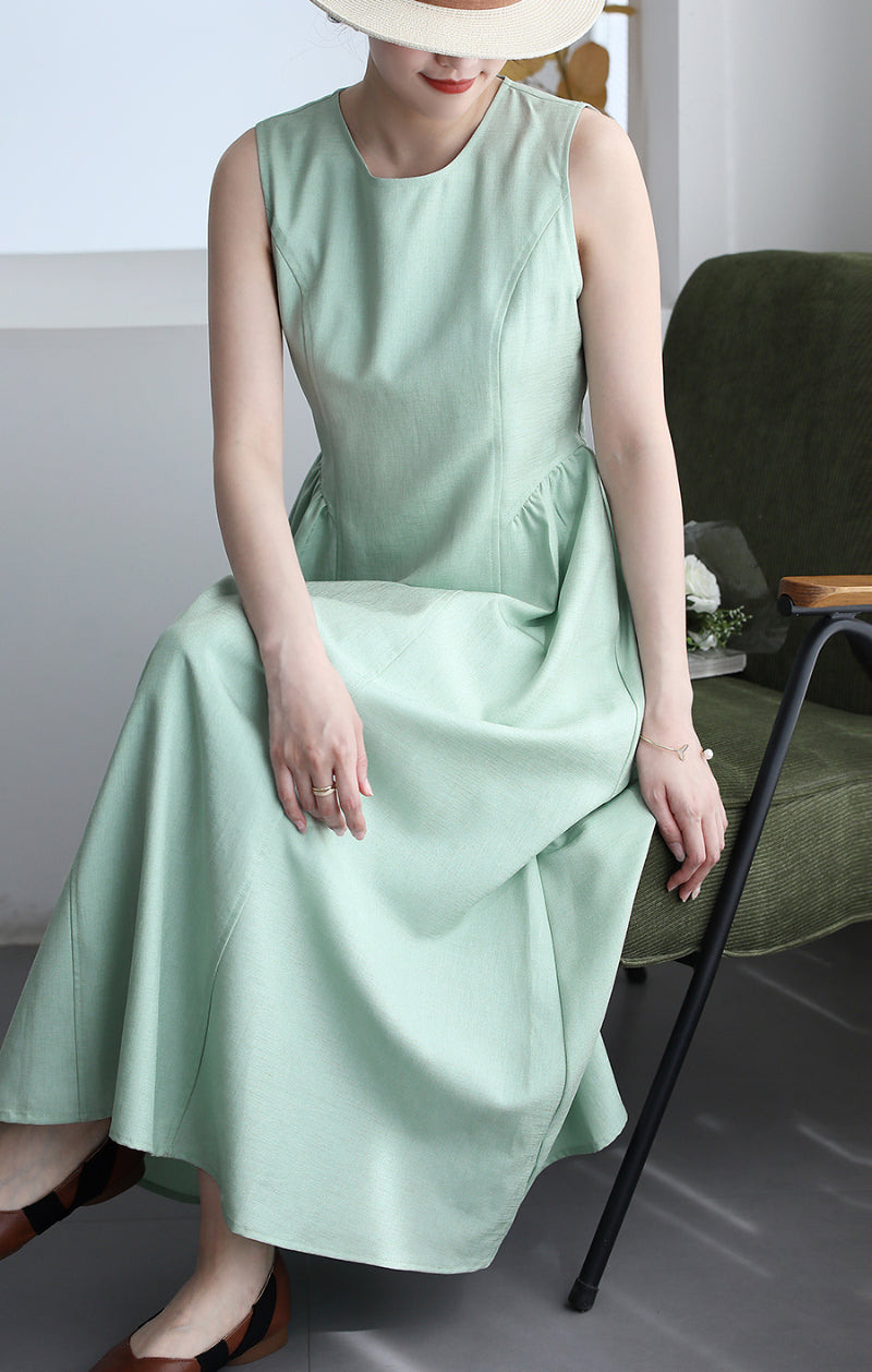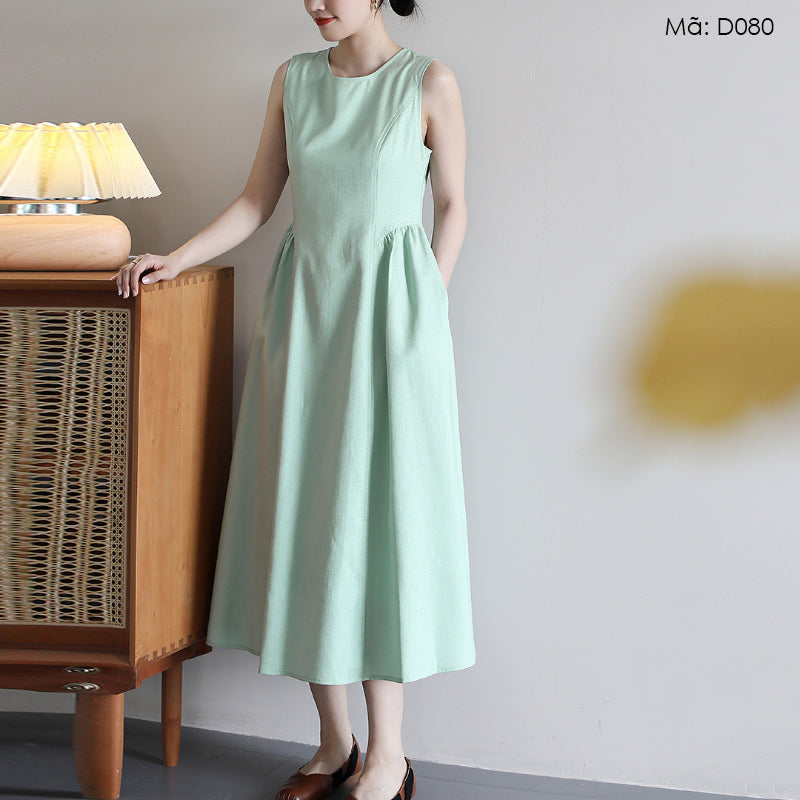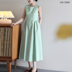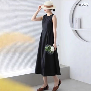 Đầm liền sát nách cổ tròn tùng nhún kiểu - D079
