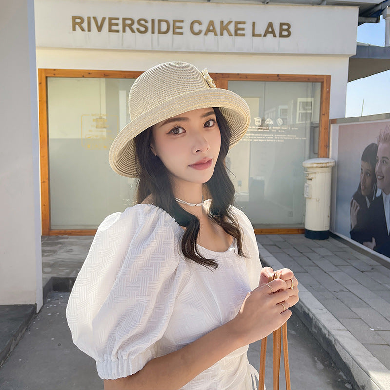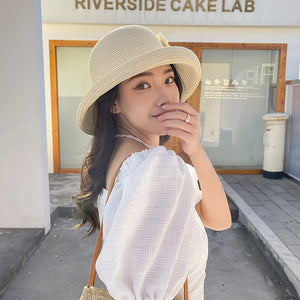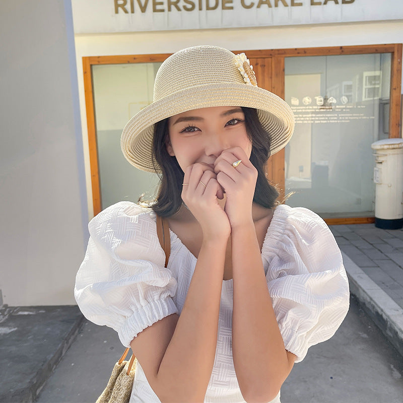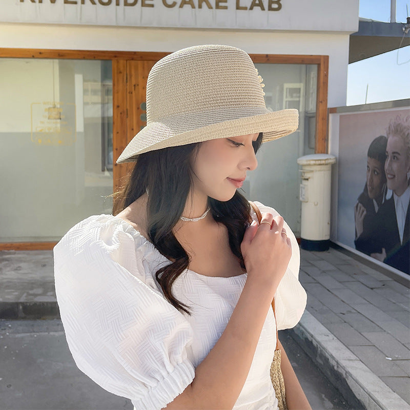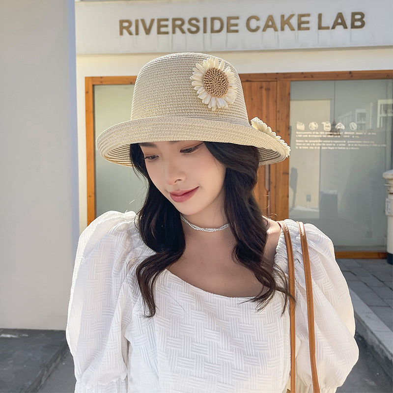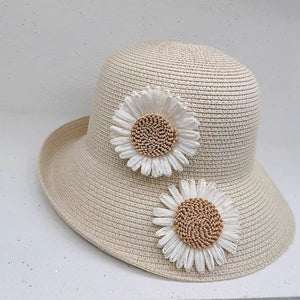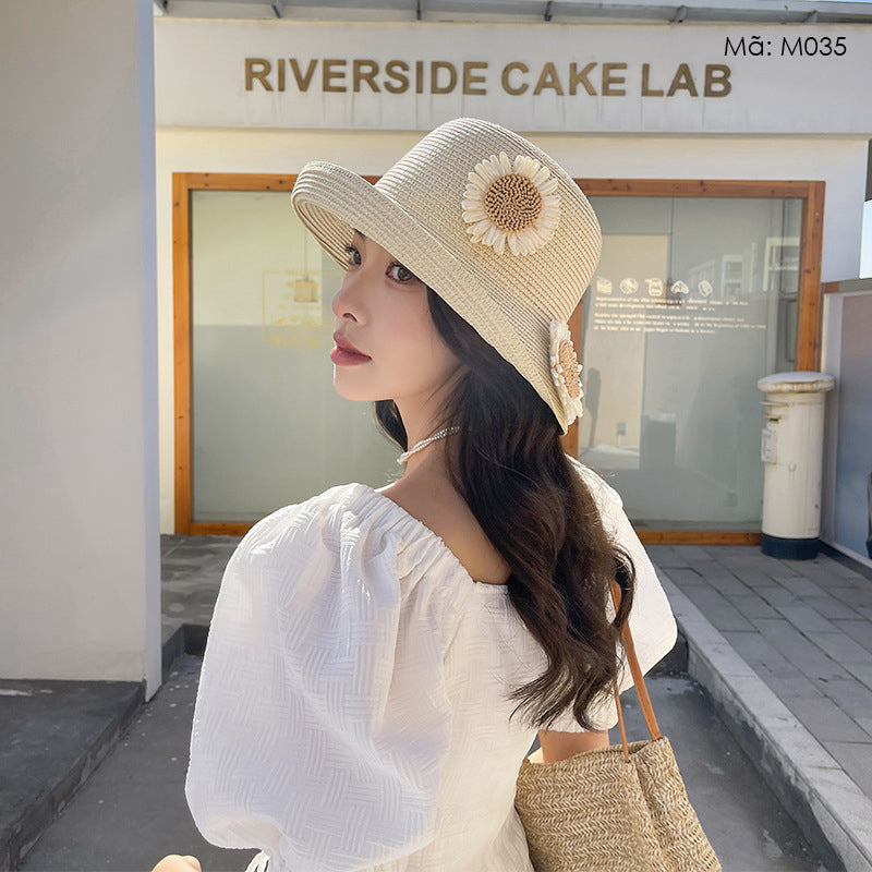 Mũ cói retro đính hoa - M035