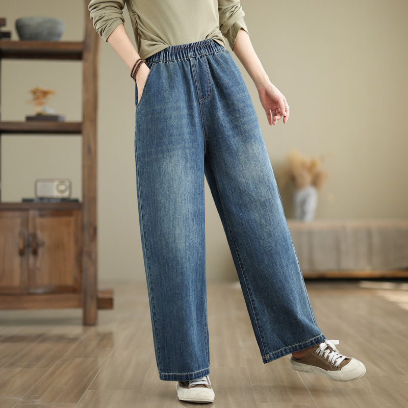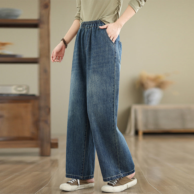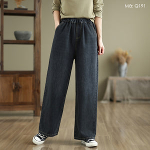 Quần baggy denim lưng thun hai túi sau bạc gối - Q190