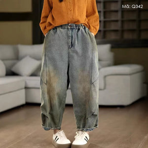 Eo 68-106cm (co giãn) , mông 128cm, đùi 80cm, dài quần 93cm