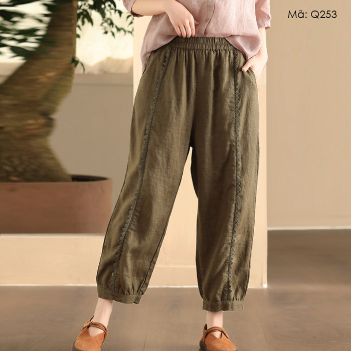 Eo 60-106cm (co giãn) , mông 112cm, đùi 68cm, dài quần 84cm.
