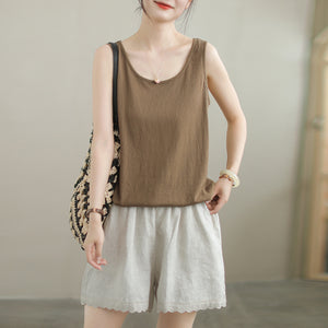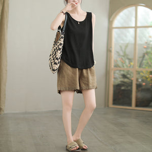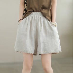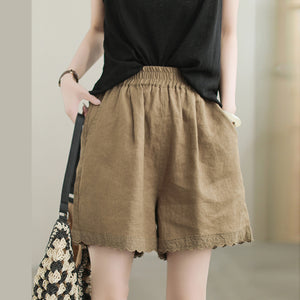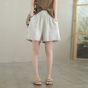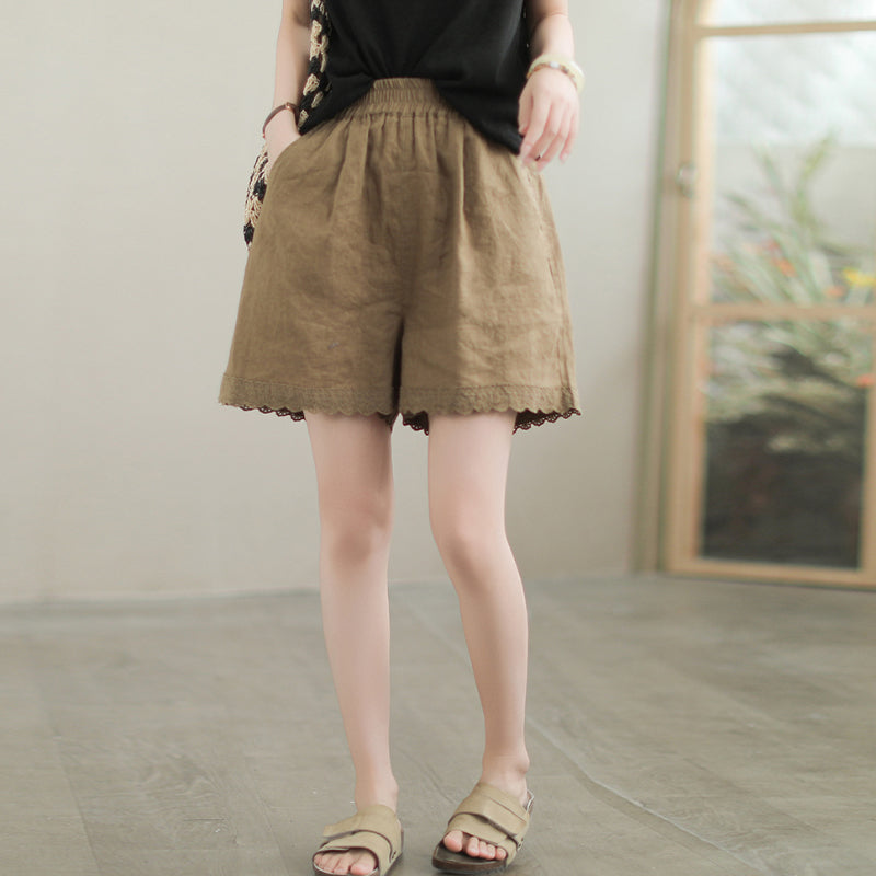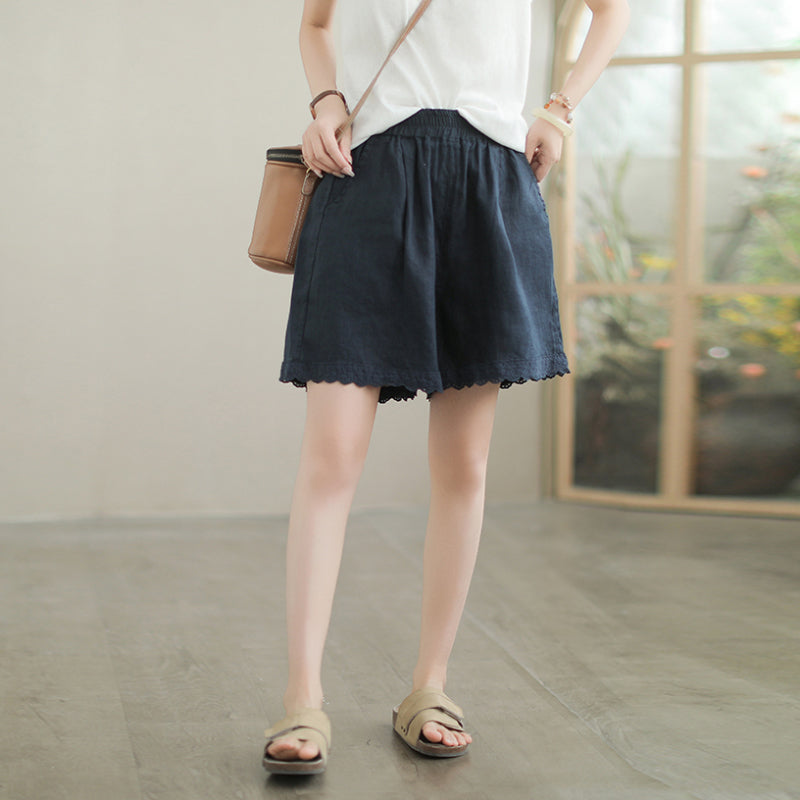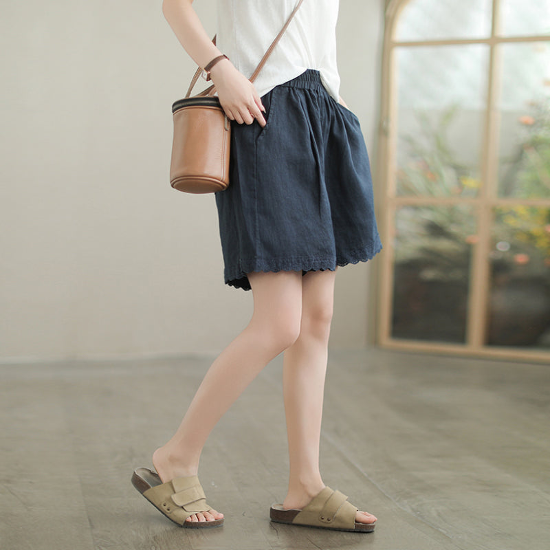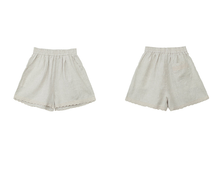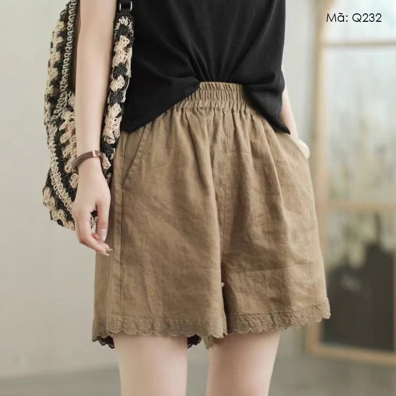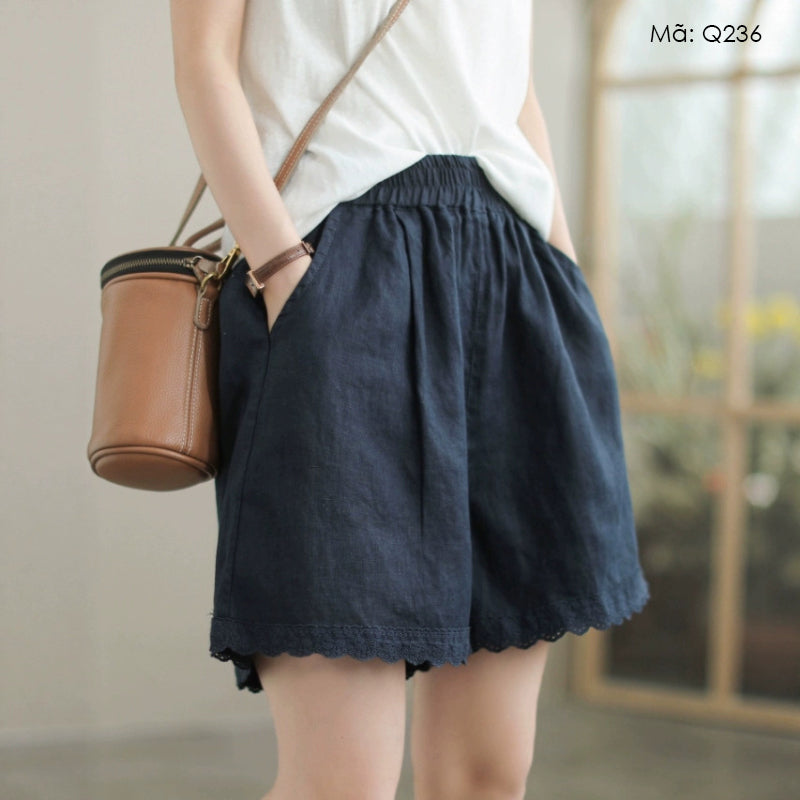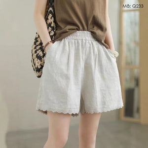 Quần sooc linen lưng thun thêu bo viền hai túi chéo - Q232